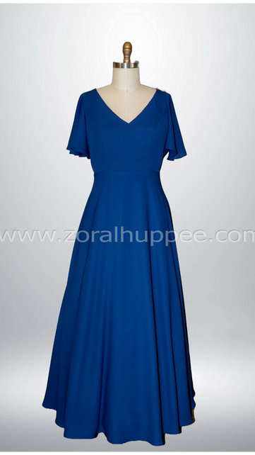 Robe haut duchesse avec manches en volants. Bas 1/2 circulaire en crêpe.